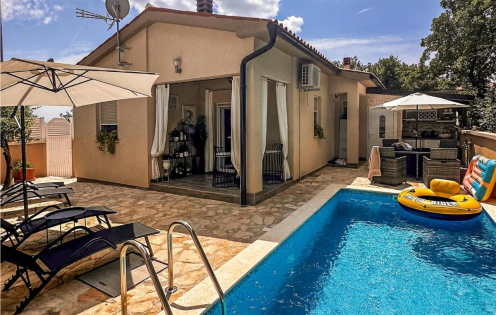 Eladó ház medencével Barbarigában! Teljesen körbekerített, 63 m²-es ikerház fűtött medencével, amely 2019-ben épült és 2024-ben teljes felújításon esett át. A ház két hálószobából, fürdőszobából, valamint nappali-konyha-étkező nyitott térből áll. A kertben medence napozórésszel, kültéri nyári konyha és fedett terasz található, amely kiváló helyszín a pihenéshez és baráti összejövetelekhez. A ház előtt saját parkolóhely biztosított. … Bővebben: ELADÓ HÁZ MEDENCÉVEL BARBARIGÁBAN!