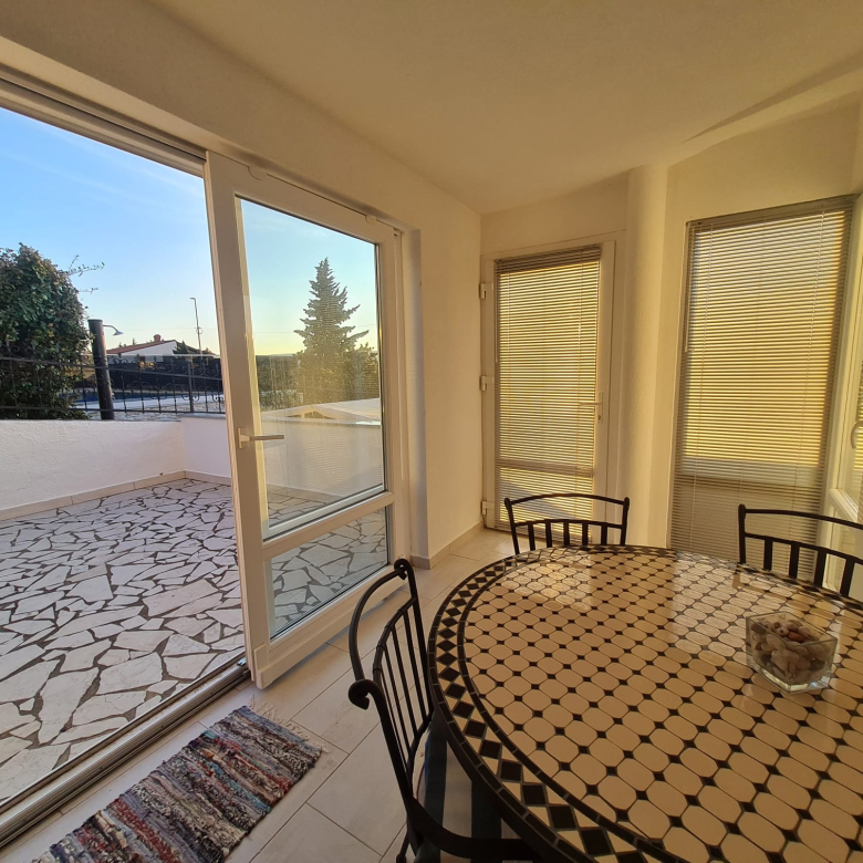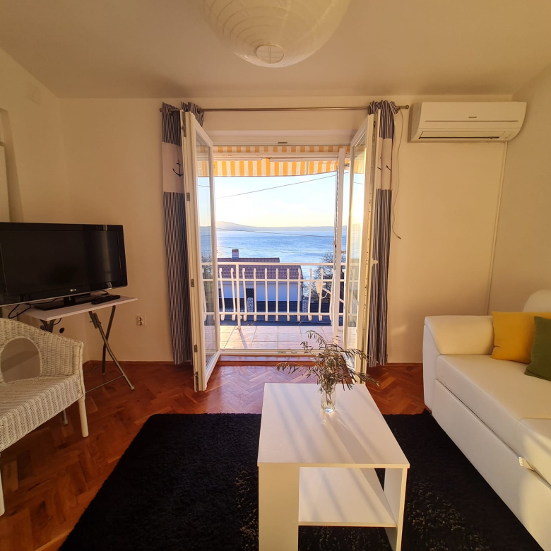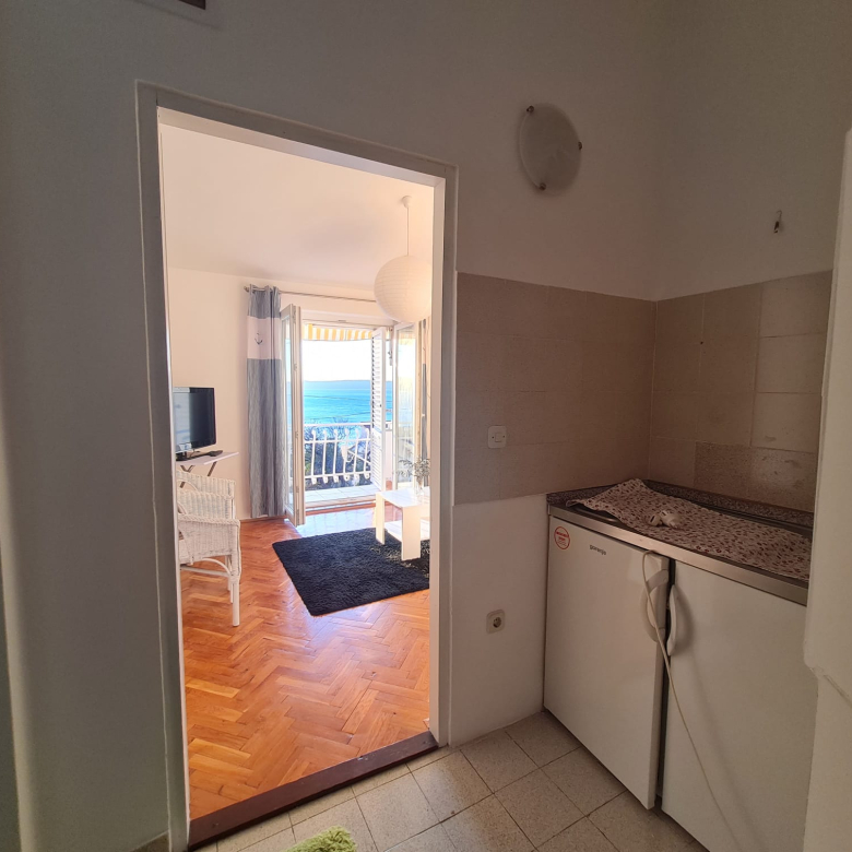 Az első emeleten található egy 50 m²-es lakás, amely nappaliból, konyhából, fürdőszobából, előszobából és tengerre néző teraszból áll. A lakás légkondicionálóval van felszerelve, amely hűtésre és fűtésre is alkalmas.